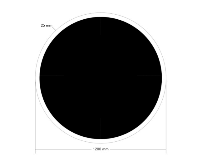 3.3 มีเส้นรอบวงเป็นสีขาว กว้าง 25 mm โดยแถบสีขาวจะต้องอยู่ภายในวงกลม ภายในแถบสีขาวจะเป็นพื้นสีดำ
